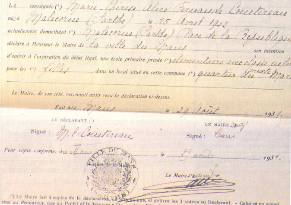 C’est la première directrice (Mlle Marie-Thérèse COINTEREAU) qui a donné son nom à l’école.
